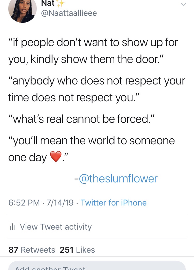 I highlighted a lot of points that I felt were in relations to what I was dealing with. I even tweeted a few and mentioned Chidera in it, it did some numbers and that goes to show that I wasn’t the only one that needed them. What I noticed as I read was that her overall idea was to point out the multi-perspectives of love: self, platonic, romantic, support systems, the healthy, and the toxic.